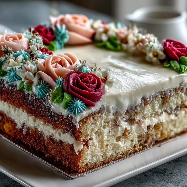 This graduation sheet cake offers a soft vanilla base topped with smooth, creamy buttercream. Using piping bags and colored buttercream, beautiful roses are created for a standout celebration centerpiece. The process includes whisking together dry ingredients, creaming butter, and alternating mixtures for a fluffy finish. Once cooled, the cake is decorated with piped designs and a congratulatory message. Allergen-friendly for most, this cake keeps well for days and pairs perfectly with celebratory beverages. For added flair or chocolate variation, swap in cocoa powder and use vibrant gel coloring. Ideal for sharing at festive gatherings, its elegant look ensures a memorable dessert display.