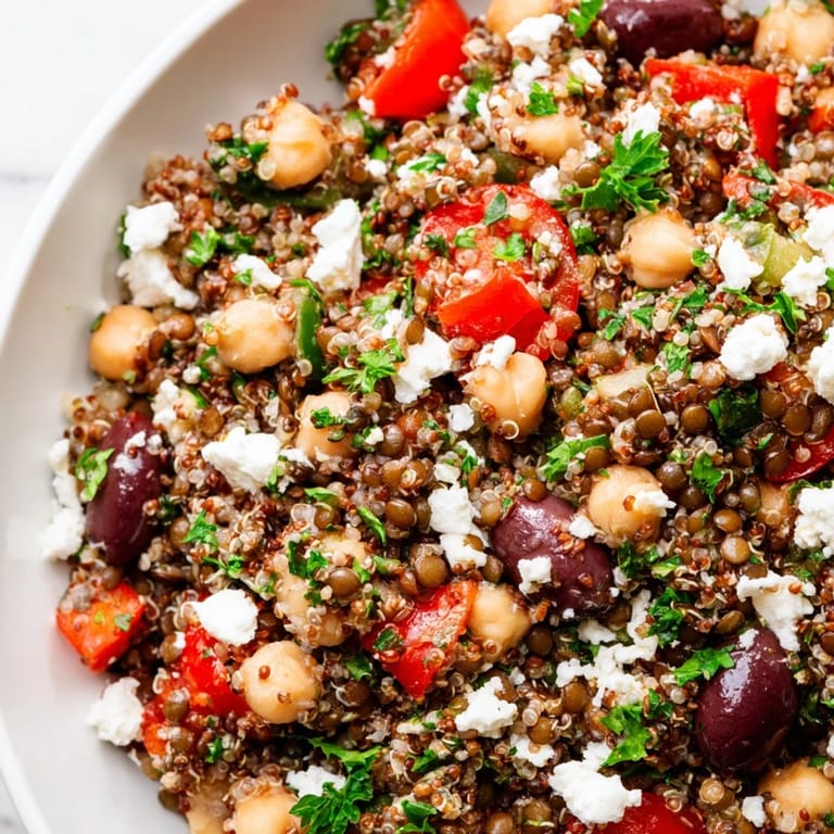 I started making this when I needed something I could actually look forward to eating at my desk. Most salads go soggy or bland by midweek, but this one stayed crisp and bright, the quinoa and lentils holding their texture like they were just tossed. My coworker asked if I ordered it from somewhere, and I felt a little smug telling her I made it Sunday night in under an hour. It became my quiet rebellion against sad desk lunches.