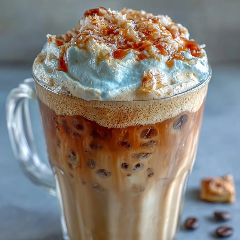Pin it There's a moment when you bring the glass to your lips and that foam touches your mouth first, cold and slightly crunchy, before the smooth frappuccino hits, and suddenly you're tasting vanilla and coffee and toasted coconut all at once. That's when this stops being a drink and becomes the thing you make when you want to pause and notice how good something can taste.