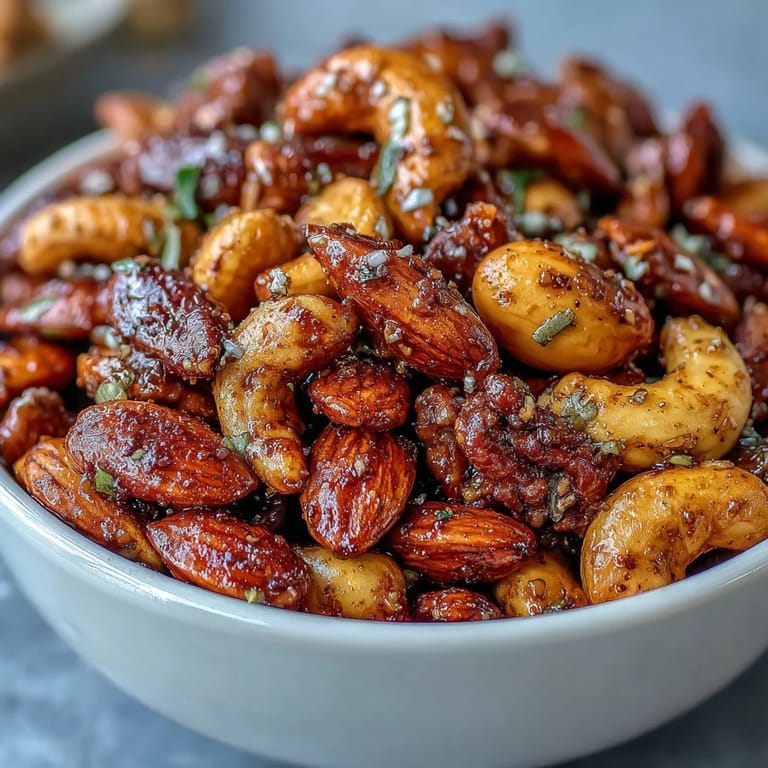 This mix hits all the markers of a genuinely satisfying snack—protein from the nuts and seeds keeps you full, healthy fats from the oils and nuts provide sustained energy, and the spices add interest so you're not just mindlessly eating the same bland thing. I keep a small jar at my desk because it gives me something to reach for that actually makes me feel better rather than guilty. The best part is how it transforms salads, yogurt bowls, or grain dishes into something restaurant-quality with zero extra effort.