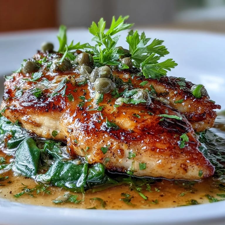 The real revelation with this recipe is understanding how a pan sauce works. When you deglaze the skillet with broth and lemon juice, you're not just making a sauce—you're capturing all the concentrated flavor from searing the chicken and transforming it into something silky and craveable. The butter emulsifies into the liquid, creating that glossy, luxurious finish that looks far more complicated than it actually is. Once you understand this technique, you'll start building pan sauces for everything, from pork chops to fish.