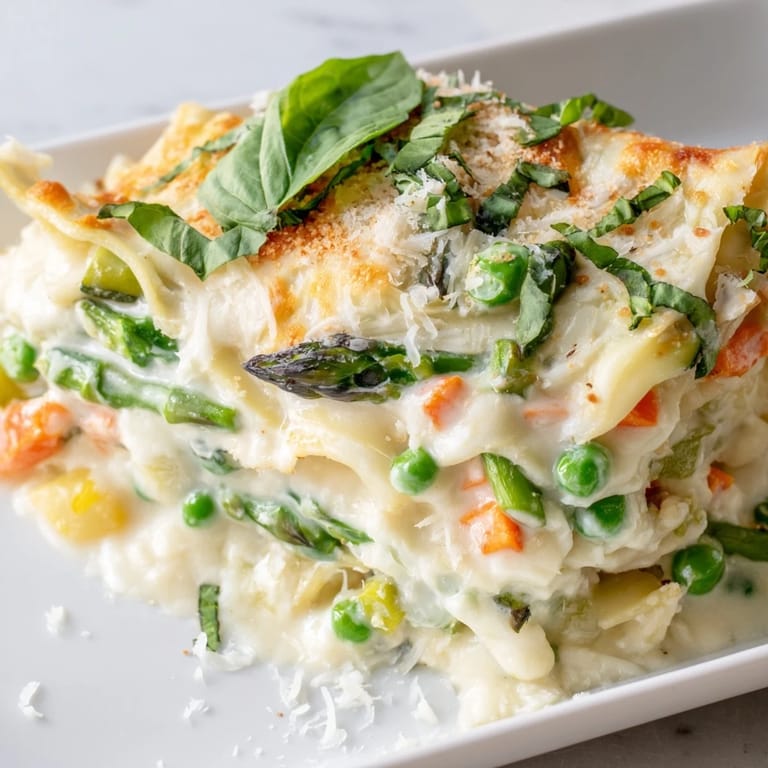 Save The first time I made this lasagna, it was a complete accident. I had intended to make a classic lasagna but realized too late that I was out of marinara sauce. What I did have was an abundance of fresh spring vegetables from the farmers market and a jar of Alfredo sauce sitting forgotten in the pantry. The result was so incredibly fresh and comforting that it instantly became a spring staple in our house, something I actually prefer over the traditional version now.
